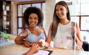 Es geht! Mit Hygienewänden aus Glas. Sie schützen die Gesprächspartner und lassen trotzdem durch Ihre Transparenz die Möglichkeit, seinem Gegenüber ein strahlendes Lächeln zu schenken.